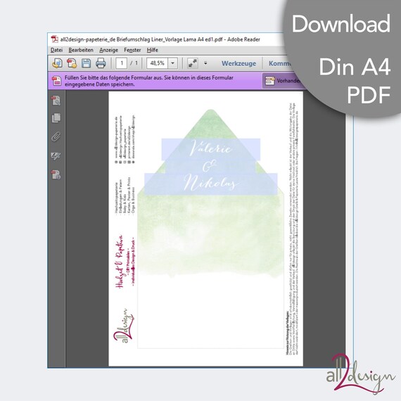Liner Inlet Briefumschlag Pdf Printable Download Etsy
